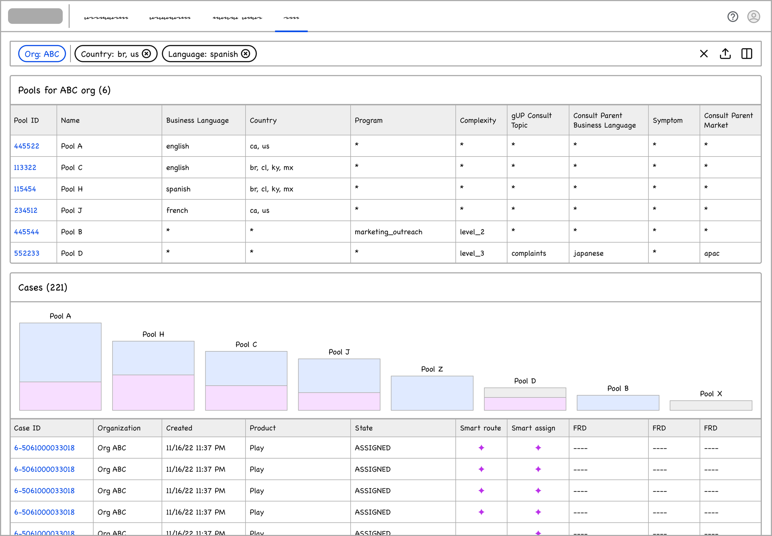 I then led multiple iterations of design, starting with low-fidelity mocks to get buy-in from our internal partners. This was followed by redesigning the IA to support complex cross-tool journeys. Finally, we validated the wireframe concepts with the admin users.